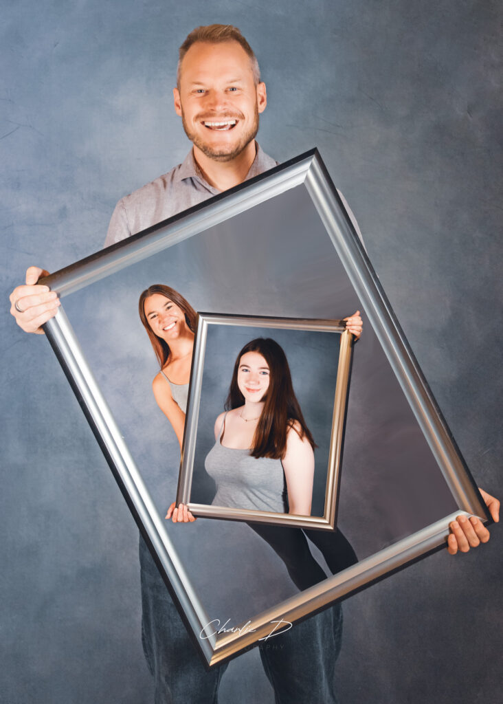 I love getting creative and trying out new ideas with you. For this one, it’s super easy—we’ll just need a big frame to play with during the shoot, and later, it can double as the perfect spot to hang your final portrait masterpiece! Don’t worry, the rest of the magic happens back in my studio.